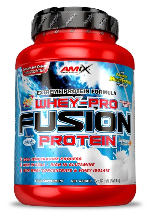 Az Amix Fusion fehérje 75-76% proteint tartalmaz, amelyet a legmodernebb alacsony hőmérsékletű ultraszűrt eljárással állítottak elő, s amely rendkívül tiszta és nagyon jó minőségű tejsavó-fehérje proteint (WPC), izolátumot (WPI) és a tejsavó hidrolizátot tartalmaznak, biztosítva a magas biológiai értéket. Az emberi szervezet részére a tejsavó-fehérje nagyon gyorsan emészthető, és képes lehet gyorsan leállítani a katabolikus folyamatokat és megindítani a fehérje-szintézist a szervezetben. Aszpartámot nem tartalmaz! A még jobb emésztéshez, hasznosuláshoz a benne található DigeZyme® növényi enzimkomplex készítmény járulhat hozzá, így akár az enyhén laktózérzékenyek is fogyaszthatják.
