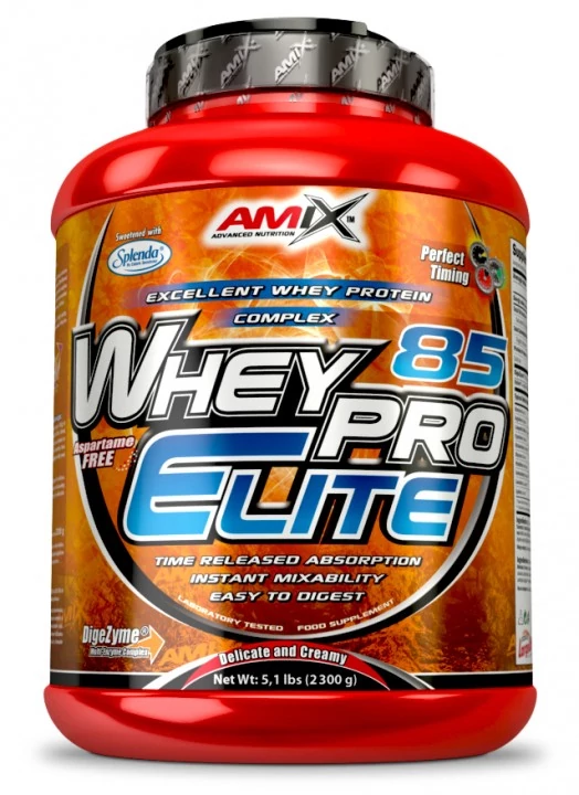 A WheyPro Elite 85 egy egyedülálló fehérjekeverék, amelyet kizárólag az Amix™ tervezett. A különleges keverék négy biológiailag igen értékes fehérjetípus kombinációját tartalmazza: CFM® Tejsavófehérje izolátum, Ultraszürt tejsavófehérje koncentrátum, Hidrolizált kazein és Hidrolizált marhafehérje izolátum. A fehérjék keveréke fokozatosan láthatja el az izmokat fontos tápanyagokkal. A formula az esszenciális és nem esszenciális aminosavak teljes spektrumát tartalmazza, magas BCAA elágazó láncú aminosavtartalommal (L-Leucin, L-Izoleucin, L-Valin). Adagonként mindössze 0,6 g cukrot, valamint igen magas: 29,8 g fehérjét tartalmaz!