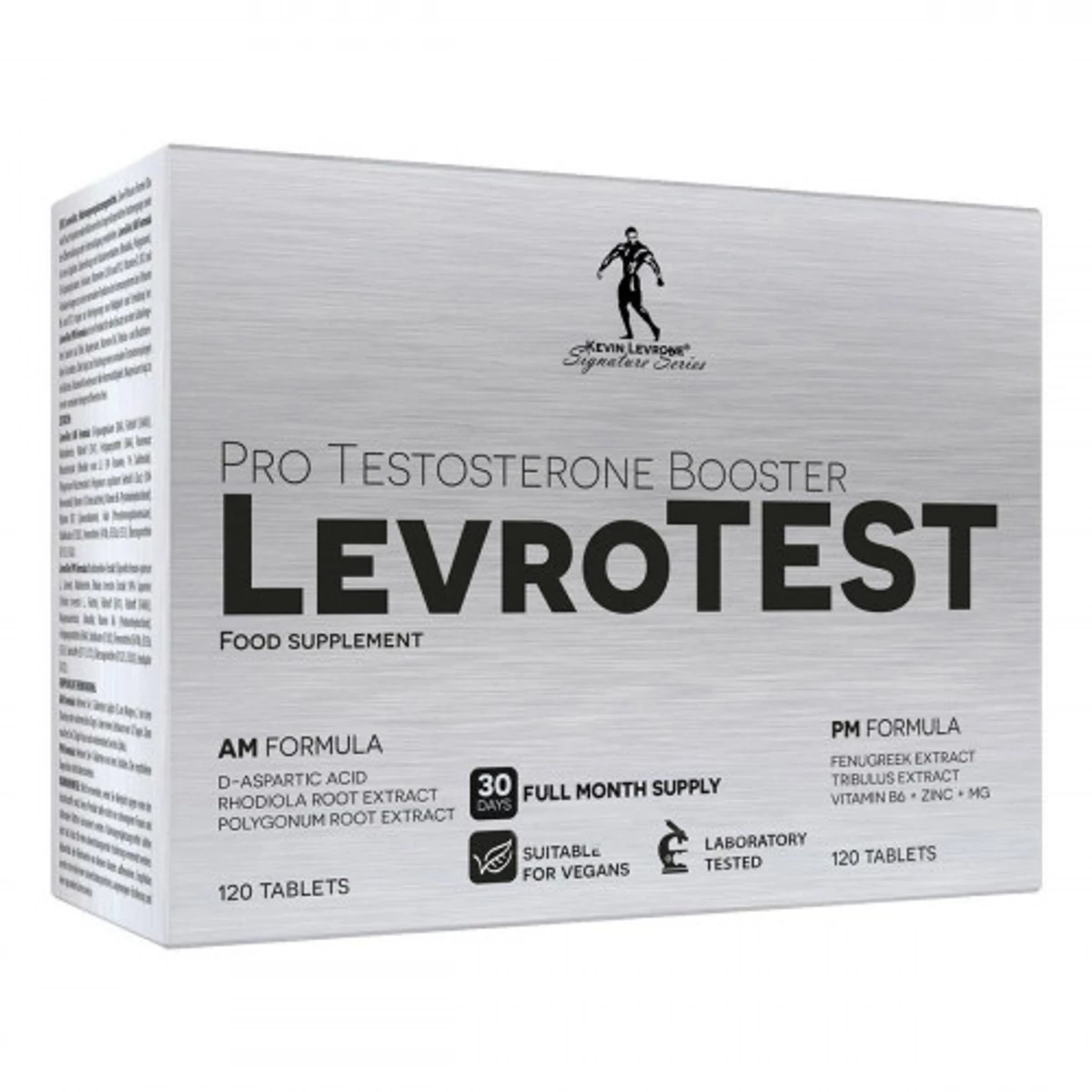 A LevroTest AM Formula speciális összetevőinek célja, hogy megfelelő energiamennyiséget biztosítsanak a magas fizikai és szellemi aktivitáshoz, aktiválja a tesztoszteron termelődését. A kutatások szerint a D-aszparaginsav fokozza a luteinizáló hormon előállítását, ami a herékben található Leydig sejtek receptoraihoz kötődik. Ezt követően beindul a ciklikus AMP (cAMP) termelődés, és a leválás a koleszterin molekula oldalláncáról. A folyamat nélkülözhetetlen a tesztoszteron-termeléshez (steroidogenesis). A formula a Rhodiola rosea gyökér kivonatát is tartalmazza, amely adaptogén tulajdonságokkal rendelkező anyag, növeli a szervezet alkalmazkodási képességét, csökkenti a stressz negatív hatásait. A készítmény esszenciális vitaminokat, D-vitamint és B-vitaminokat is tartalmaz. A D3-vitamin támogatja az izomzat optimális működését.