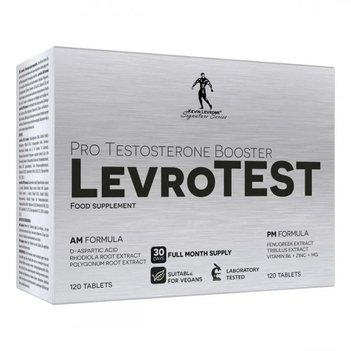 LevroTest PM Formula egy speciális, haladó formula mely a tesztoszteron éjszaka történő termelődést aktiválja. Alkotóelemei között megtalálható a híres Tribulus terrestris és görögszéna, melyek a szakvélemény szerint természetesen serkentik a szervezet tesztoszteronszintjét. Magnézium, B6-vitamin és a cink tölti be a ZMA funkcióját, javítva az alvás minőségét és a szervezet regenerációs képességét. Továbbá, a magnézium segít fenntartani az elektrolit-egyensúlyt és szerepet játszik az izmok megfelelő működésében is.