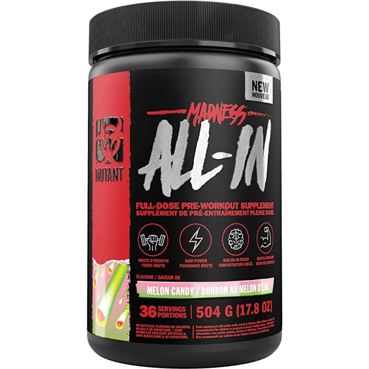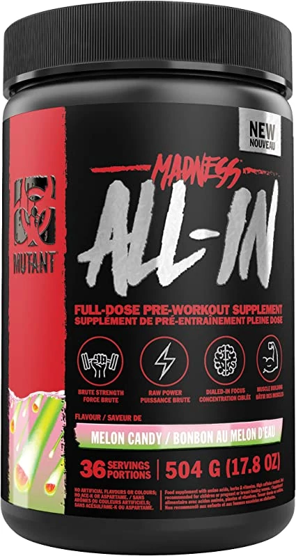A Mutant Madness ALL-IN a népszerű és igen eredményes Mutant Madness új, még erősebb változata! Egy valódi "all-in-one" edzés előtti formula, az összes bevált összetevővel! Így igazán új szintre emelheted az edzés hatékonyságát! Négyféle egyedi keveréket tartalmaz, melyek az erőre, a fehérjeszintézisre, az izomhidratációra és a fokozott mentális fókuszra összpontosítanak. Hozzáadott elektrolitokat is tartalmaz, valamint B12-vitamint, amely hozzájárul a kimerültség és a fáradtság csökkentéséhez, az energiatermelés szempontjából fontos megfelelő anyagcseréhez és a vörösvértestek megfelelő termeléséhez.