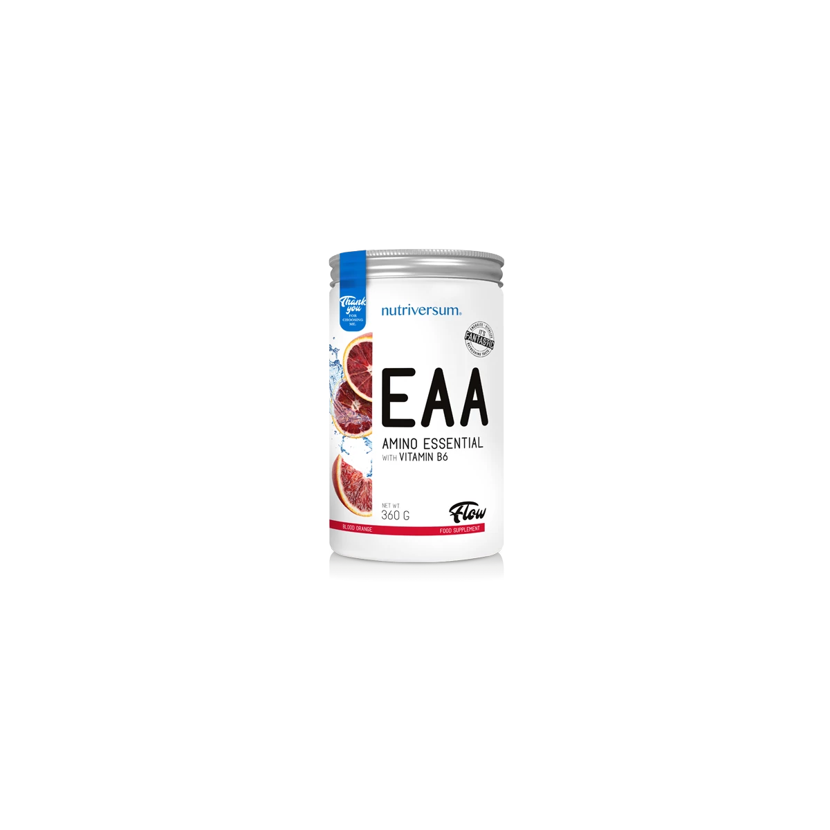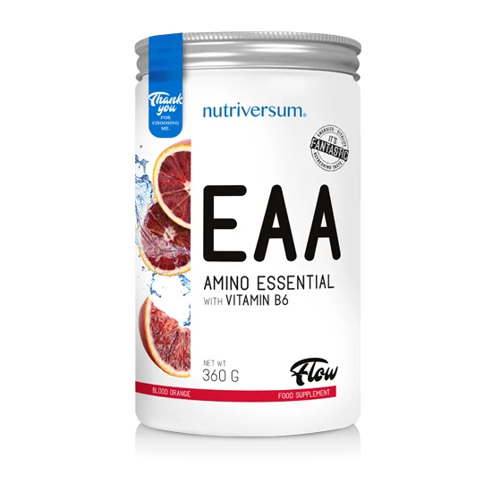 A Nutriversum EAA egy ízesített, instant aminosav formula, mely adagonként 2123 mg BCAA-t, valamint 3607 mg további esszenciális aminosavakat tartalmaz.