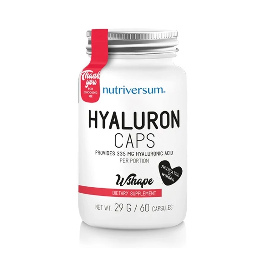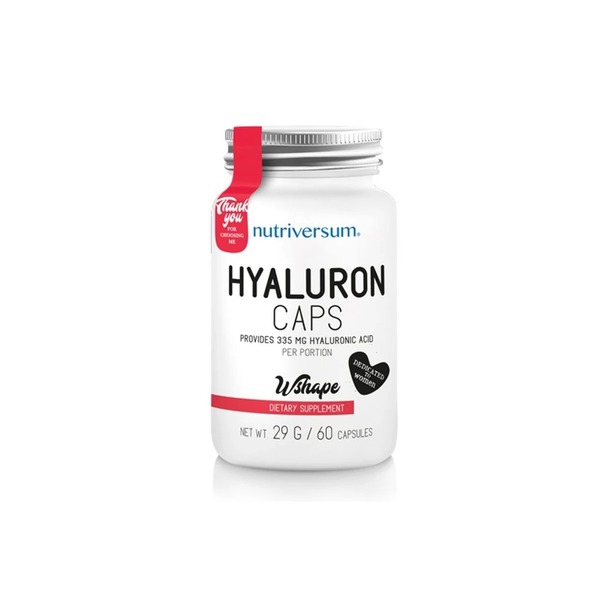 A hialuronsav egy a bőrben természetesen is megtalálható molekula, ami kiválóan képes növelni a bőr vízmegtartó képességét, a saját súlyának akár ezerszeresét is képes vízben megkötni, ezáltal simább és rugalmasabb is lesz a bőrünk. A hialuron segít kisimítani a vízhiány okozta apró ráncokat is, valamint antioxidáns-bőrvédő tulajdonságai is bizonyítottak. Testünk kötőszöveteiben szintén megtalálható, fontos anyag. A Nutriversum Hyaluron Caps a forgalomban lévő hialurontartalmú készítmények közül az egyik legnagyobb hatóanyagmennyiséget tartalmazza adagonként: kapszulánként 335 mg hialuronsavat!